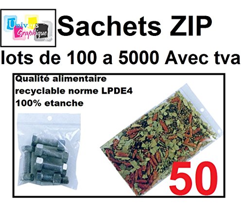 lot de 50 Sachets 150 x 200 mm fermeture zip Transparent Sachet fermeture zip 15 x 20 cm 50u sac plastique compatible alimentaire et congélation de marque UNIVERS GRAPHIQUE REF UGS1350 Facture avec TVA déductible
